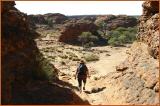 Der 'Kings Canyon Walk' bietet unvergleichliche Aussichten ins Tal, auf die senkrechten Felswaende und die verwitterten Sandsteinkuppeln auf dem Plateau. Der Weg fuehrt ueber einen steilen Pfad zur Nordflanke der Felsklippen, Durchquerung des King Creek, Bademöglichkeit beim grün bewachsenen 'Garden of Eden'. Rückweg auf der Südseite durch die Sandsteinkuppeln von 'Lost City'. (6 km langer Rundwanderweg, Dauer ca.4 Stunden).