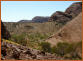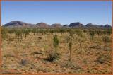 Die 36 Kuppeln der Olgas (auch Kata Tjuta = 'viele Koepfe' genannt) ragen 32 km westlich vom Ayers Rock aus der wuestenhaften Ebene heraus. Die hoechste Kuppel ist der Mount Olga mit 546 m. Urspruenglich bildeten die Olgas wohl ein einziges gewaltiges Felsmassiv. Aufgrund des gröber strukturierten Gesteinsmaterials konnten die zerstörenden Kräfte der Verwitterung den Komplex in einzelne Kuppeln aufspalten.